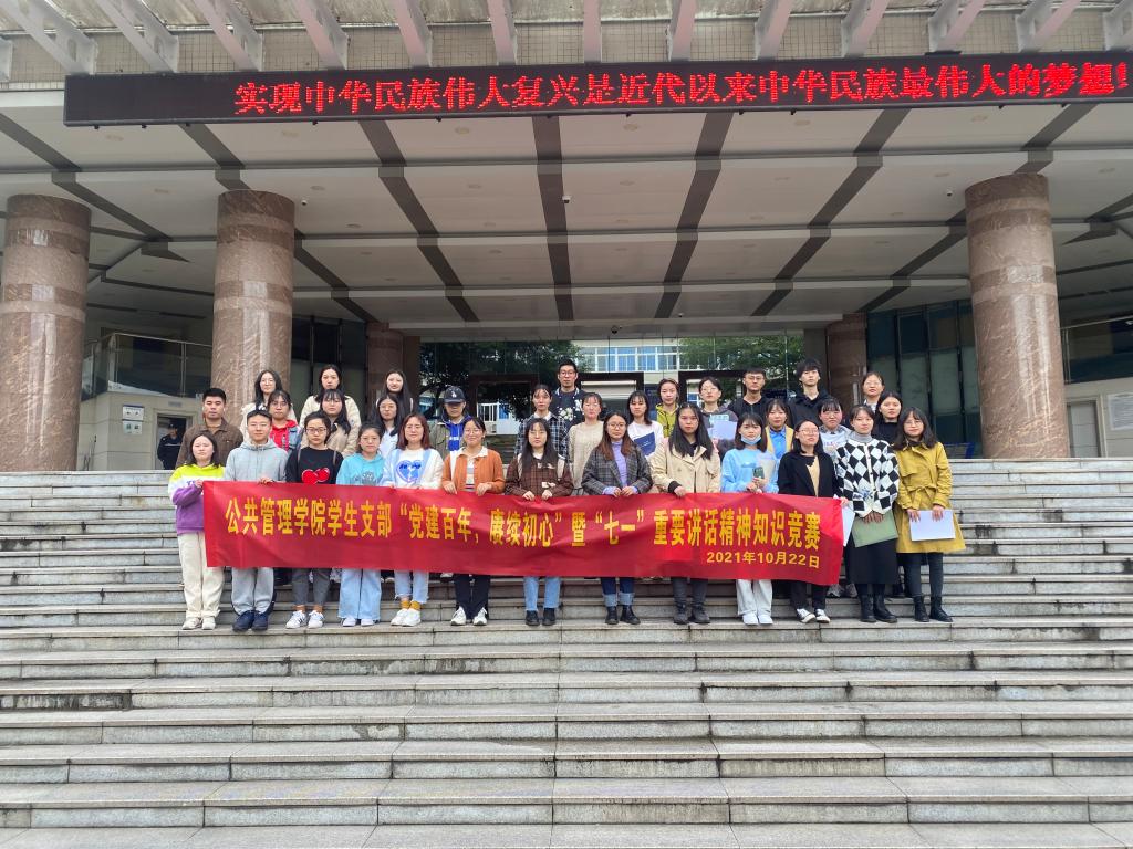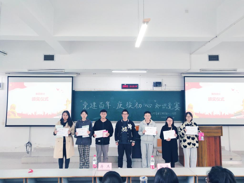 当前位置: 首页 >> 党建双创 >> 主题党日活动 >> 正文 beat365中文官网学生一、二支部开展“党建百年,赓续初心”暨学习习近平总书记“七一”重要讲话精神知识竞赛活动 时间:2021年10月25日 11:13 作者: 廖偲宇 2021年10月22日,beat365中文官网学生一、二支部在beat365中文官网南岸校区博智楼7322教室开展了“党建百年,赓续初心”暨学习习近平总书记“七一”重要讲话精神知识竞赛活动。学院学生一支部书记郭爽、二支部书记蒋杰及所在支部党员共计38名同志参加本次活动。活动由学生二支部廖偲宇同志主持。 本次知识竞赛活动以习近平总书记“七一”重要讲话精神为主题,分为个人必答题和个人抢答题两个环节,个人必答题采用笔试方式,个人抢答题以个人形式进行竞赛抢答,两个环节累次积极确定竞赛名次。在个人必答题环节中大家仔细思考、认真作答,诚信对待每一道题目;个人抢答题环节中,在主持人的带领下大家积极踊跃地进行抢答,氛围十分活跃,从答题的正确率中能够看出大家平时的学习积累很扎实。 活动最后由学生一支部书记郭爽作总结发言,他表示通过本次学习活动,有效地促进了党员同志们对习近平总书记“七一”重要讲话精神学深悟透、融会贯通,进一步深化了对党的初心和使命的认识,希望党员同志们通过学习,增强守初心的自觉,明晰自身的使命担当,让自己更加筑牢信仰之基、补足精神之钙、把稳思想之舵,进一步完善和提升自己。 通过本次知识竞赛活动,使支部党员更加深入地了解了有关党史以及党的伟大成就等内容,充分调动了他们的学习工作积极性、主动性、创造性和使命担当,较好地促进了他们在学习、生活及工作中 “不忘初心,牢记使命,砥砺前行”。 大家积极准备抢答 三等奖获奖照片 二等奖获奖照片 一等奖获奖照片 活动结束后合影留念 上一条:beat365中文官网学生一、二支部走进养老院志愿服务活动圆满结束 下一条:beat365中文官网学生一、二支部2021年10月组织生活顺利开展 【关闭】