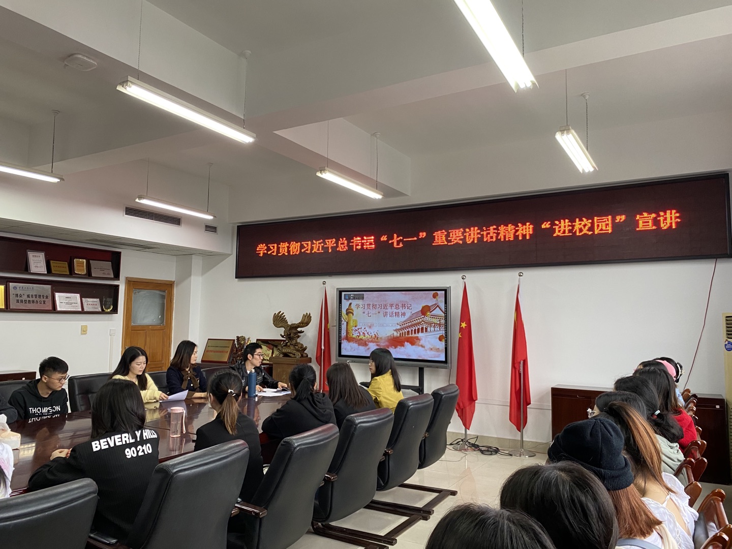 当前位置: 首页 >> 党建双创 >> 主题党日活动 >> 正文 【党课开讲啦】beat365学习贯彻习近平总书记“七一”重要讲话精神“进校园”宣讲顺利举行 时间:2021年10月15日 16:31 作者: 江桂兰 为深入学习贯彻习近平总书记“七一”重要讲话精神,推动党史学习教育进一步走实走深,beat365中文官网学团办辅导员郭爽老师于2021年10月15日中午12:40在南岸校区启智楼81004会议室为学院全体学生党员讲授“学习贯彻习近平总书记“七一”重要讲话精神专题党课。beat365辅导员蒋杰、邓丽、刘乂萌及学生支部学生党员共计44人参与了本次宣讲。 郭爽老师在该党课中深刻阐述了习近平总书记“七一”重要讲话的重大意义。他说,作为一名光荣的中国共产党党员,作为一名支部书记,要深入地学习、领会、研究习近平总书记“七一”重要讲话精神的深刻内涵,将其当成今后学习工作和生活的蓝本及行动纲领。习近平总书记“七一”重要讲话高屋建瓴,是一篇马克思主义中国化的纲领性文献,是新时代中国共产党人不忘初心、牢记使命的政治宣言,是中国共产党牢记初心使命、开创美好未来的时代答卷,是科学指引我们党、国家、民族开创千秋伟业的行动纲领。他最后总结到,希望同学们能够挥洒自己的青春,深钻自己的专业,牢记习总书记的嘱托,志存高远,脚踏实地,为实现中华民族伟大复兴中国梦不懈奋斗。 该党课的宣讲帮助beat365学生党员深化了对习近平总书记“七一”重要讲话精神的理解和把握,对全院进一步学习好、宣传好、贯彻好、落实好习近平总书记“七一”重要讲话精神进行了有力的思想动员,更好地“学党史、感党恩、听党话、跟党走”! 上一条:beat365中文官网学生一、二支部2021年10月组织生活顺利开展 下一条:beat365中文官网学生支部“弘扬长津湖精神,牢记使命与担当”主题党日活动顺利开展 【关闭】