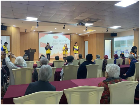 当前位置: 首页 >> 党建双创 >> 主题党日活动 >> 正文 beat365中文官网学生一、二支部走进养老院志愿服务活动圆满结束 时间:2021年10月25日 14:27 作者: 郭爽 2021年10月23日,beat365中文官网一、二支部组织部分党员同志及积极分子联合学院青年志愿者服务队在南岸区美瑞嘉年江南人家养护院举办了以“星心相系续传承,举国欢庆品经典”为主题的关爱老人志愿服务活动暨老人生日庆贺会。参加本次志愿服务活动的志愿者共有20余人,他们通过文艺节目汇演、生日庆贺的形式为老人们送去欢乐和祝福。 10月23日上午8点,由院青年志愿者服务队带队从学校出发到达目标养护院,到达现场后,各志愿者们有条不紊的开展活动前期准备工作,并将老人陆续带领到现场就坐。9点20分,活动准时开始。首先进行的是文艺节目汇演,节目类型丰富,有唱歌、跳舞、朗诵、武术等,期间,表演者们和老人们积极互动,活动现场气氛热烈。活动中还穿插了现场庆生环节,为生日临近的几位老人送去了生日贺卡表达了衷心的祝福。除此以外,老人们也积极参与到活动中来,为我们献唱了红色经典歌曲,现场气氛达到高潮。10点20分主持人宣布活动结束,全体成员一起合唱《我和我的祖国》,并组织现场志愿者们和老人们合影,伴随着欢声笑语,本次活动圆满结束! 本次活动创新想法,形式新颖,通过志愿服务的形式真正地让学生党员参与到社会贡献当中去,进一步地实现了自身的价值,提升了政治素质和党性,坚定了大家为人民服务的思想。本次活动的顺利开展也为老人们宁静的生活增添了几分色彩,我们用爱与热情向他们表达了衷心的问候与祝福。人人都敬老,社会更美好!愿大家一起从身边小事做起! 志愿者们为老人们表演节目 志愿者们为老人们准备庆生仪式 活动结束志愿者们和老人合影 上一条:beat365中文官网学生一支部2021年11月发展党员大会顺利召开 下一条:beat365中文官网学生一、二支部开展“党建百年,赓续初心”暨学习习近平总书记“七一”重要讲话精神知识竞赛活动 【关闭】