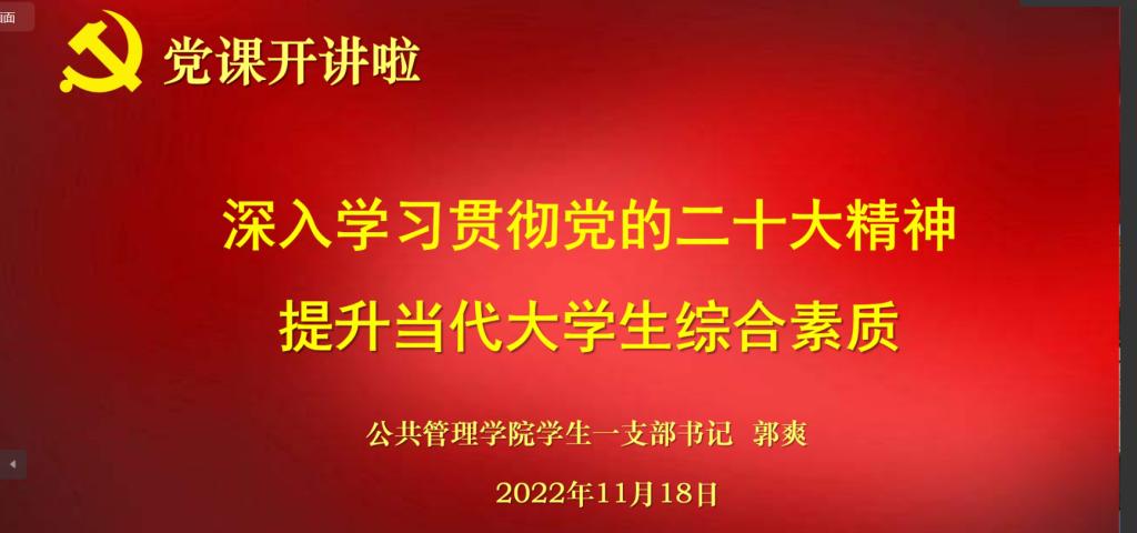 当前位置: 首页 >> 党建双创 >> 主题党日活动 >> 正文 beat365中文官网学生第一党支部召开11月份主题党日活动 时间:2022年11月18日 19:12 作者: 郭爽 2022年11月18日,beat365中文官网学生第一党支部在企业微信线上召开月11月主题党日活动,本次活动应到24人,实到24人,本次活动由支部书记郭爽同志主持。 会议伊始 ,郭爽书记就“深入学习贯彻党的二十大精神,提升当代大学生综合素质”为主题给全体支部同志上了一门生动的专题党课。党课主要内容包括大会概况及重要成果、大会报告和主要精神和青年强则国家强三个方面。在党课最后,郭爽书记向党员同志们提出了三个问题:作为大学生,我们应该如何来提升自己?作为大学生党员,我们应该如何来要求自己?作为大学生党员,你将如何参与到全面建设社会主义现代化国家、全面推进中华民族伟大复兴的国家发展战略之中? 党课完毕后,由段赛男、刘凤灵、严雪柔、任瑶、陶友明五位同志领学11月相关学习内容。段赛男同志领学了《中共中央关于认真学习宣传贯彻党的二十大精神的决定》、《习近平在中国共产党第二十次全国代表大会上的报告《高举中国特色社会主义伟大旗帜为全面建设社会主义现代化国家而团结奋斗》》的内容,刘凤灵同志领学了《中国共产党章程》的内容,严雪柔同志领学了《中国共产党第二十届中央委员会第一次全体会议公报》、《习近平在二十届中共中央政治局常委同中外记者见面时的讲话》、《习近平在出席军队领导干部会议时的讲话》、《中共中央政治局会议》的内容,任瑶同志领学了《习总书记在瞻仰延安革命纪念地时的重要讲话精神》、《习总书记在陕西延安和河南安阳考察时的重要讲话精神》、《习总书记重要文章《坚持人民至上》《求是》2022年第20期》、《重庆市全市领导干部大会10月24日会议精神》、《重庆市委常委会10月27日会议精神》的内容,陶友明同志领学了《习近平谈治国理政》的内容。 随后由任瑶同志分享了中国工程院院士,最美奋斗者,中共党员鲜学福的故事。年过九旬的他仍坚守在科研第一线,他燃烧自己,放射出无尽的热量,托起了强国梦,为我们广大党员同志树立了光辉榜样。强国的梦,是鲜学福的梦,更是我们每一个人的梦。广大党员同志应当坚守岗位,绽放光热,将青春奉献于强国事业。 所有领学完毕后,与会同志展开讨论。任瑶同志说,我们要做到学思践悟,做到多方面、时代性、终身性,做到学思践悟融会贯通。喻薇同志说作为大学生党员,我们要在思想上学习上生活上工作上努力提升自己。杨若欣同志说作为党员,我们要起到带头作用,为实现中华民族伟大复兴中国梦而不懈奋斗。 最后,支部书记郭爽同志作了总结讲话。他谈到我们要做德智体美劳全面发展的人,要积极思考如何才能提升自己的各项本领,为中国梦而努力奋斗。同时,在当前疫情严重的情况下,作为党员我们要有分辨是非的能力,并积极起到模范带头作用。此外,他也提醒各位党员同志要时刻注意细节,细节决定成败。 上一条:beat365中文官网2022年11月入党积极分子培训班胜利闭幕 下一条:beat365中文官网学生第一党支部召开2022年10月份主题党日活动 【关闭】