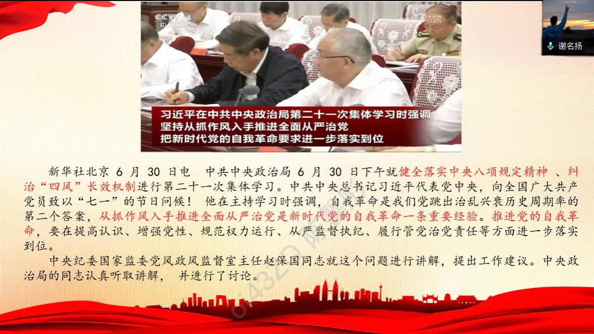 当前位置: 首页 >> 党建双创 >> 主题党日活动 >> 正文 beat365中文官网学生第一党支部7月主题党日活动 时间:2025年07月08日 10:58 作者: 杨阳 2025年7月7日,beat365中文官网学生第一党支部通过企业微信平台召开7月主题党日活动。会议由学生党员黄政龙同志主持,支部全体党员线上参会。 会上,谢书楠同志介绍了新加入支部的党员教师杨阳、梅艺同志,并说明两位教师今后将承担学生党支部的指导与管理工作。她表示,希望全体党员加强协作、密切联系,在组织生活中发挥好师生协同作用,持续推动支部建设迈上新台阶。 随后,朱羿明、谢名扬同志分别领学了《团结奋斗是中国人民创造历史伟业的必由之路》(《求是》杂志刊发)和习近平总书记在中共中央政治局第二十一次集体学习时的重要讲话精神,引导党员深刻理解“团结奋斗”的时代价值与现实意义。王若瑜同志分享了黄君珏烈士的英勇事迹,展现了革命先烈的坚定信仰与牺牲精神。刘念同志结合全国劳模冯秋荣的先进事迹,强调要将责任担当融入实际行动。陈馨彤同志围绕中央八项规定,倡导学生党员弘扬优良作风,抵制形式主义与享乐主义。 最后,谢书楠同志在总结中表示,假期既是身心调整的重要阶段,更是加强理论学习、锤炼党性的关键时期。她鼓励全体党员持续学习、主动作为,强化与共学社区、党员服务站的协同联动,推动党建与实践深度融合、服务实效持续提升,为增强支部凝聚力与组织力打下坚实基础。 上一条:beat365中文官网学生第二党支部召开2025年7月主题党日活动 下一条:公管学院陆嘉书记主讲专题党课——党在新时代的“徙木立信”之举 【关闭】