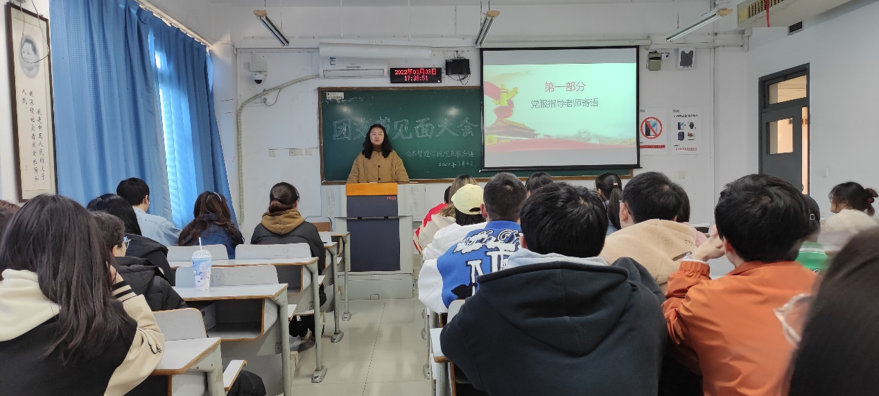 当前位置: 首页 >> 学团工作 >> 学团快讯 >> 正文 【beat365中文官网党服】“新学期团支书见面大会”圆满结束 时间:2022年03月04日 17:19 作者: 李恒 2022年3月3日,beat365中文官网党员服务站新学期团支书见面大会于beat365中文官网博智楼407如期举行并圆满结束。本次见面大会旨在通过各班级团支书,让同学们更加了解党服的同时搭建起一架与入党积极分子和预备党员之间交流沟通的桥梁。 大会第一部分,由党服指导老师讲话。首先由站长廖偲宇说明本次见面大会的目的和期望,并介绍本次大会的大致流程。其次,由党服前指导老师郭爽老师进行讲话。郭爽老师对党服以往的工作进行大致总结并对大家的工作进行了肯定。与此同时,郭爽老师也希望大家继续秉持党的宗旨,将党服发展的越来越好。之后,党服现任指导老师李恒老师进行了自我介绍,并表示在今后将与大家共同成长,将党服不断做大做强。 大会第二部分,进行党服概况介绍及党服相关考核要求讲解。首先,新闻部干事彭诗懿对上学期党服开展的活动进行了视频总结,并对党服的指导老师、站长团及其分管部门、各部门工作内容进行简单介绍。其次,由站长团进行活动要求讲解及相关工作介绍。宣传部部长李新玥对上学期活动过程中出现的普遍性问题进行统一回复,并对相关要求做出说明。办公室部长邓晓燕对积极分子的发展和转正的要求进行说明,指出当前转正越来越严格,党服后续也会加大考核力度,希望大家能以更高的标准来要求自己。组织部部长吴仕龙向大家介绍了党服的规章制度、活动文件,并着重介绍了学习强国考核标准。 大会第三部分,入党流程介绍及站长寄语。首先,办公室干事王茜向大家介绍了入党流程、入党条件以及党员标准,让大家清楚入党流程的同时更坚定了大家的理想信念。然后,副站长张可艺对入党流程进行了补充说明,更加详细的介绍了入党的具体流程。其次,副站长林正毅对过去一学期里大家的各项工作进行了充分肯定,并希望在接下来的一学期里,大家能够继续愉快的合作。最后,站长廖偲宇对本次大会进行总结,希望大家不忘初心,砥砺前行。 本次见面大会,通过系统的向大家介绍党服活动要求及入党流程等内容,旨在让各位同学更加深入的了解党服,在今后以更高的热情参与到各项活动中去。同时,本次见面大会的顺利召开,也为本学期接下来的活动打下坚实基础,党服各成员也将有序展开各项工作,将党服建设的越来越好! 上一条:【beat365中文官网党服】 “镌刻拼搏印记,绽放青春风采”冬季奥运会主题手抄报制作活动闭幕式圆满结束 下一条:关注学生内驱力----学生思想动态地图工作模式探讨 【关闭】