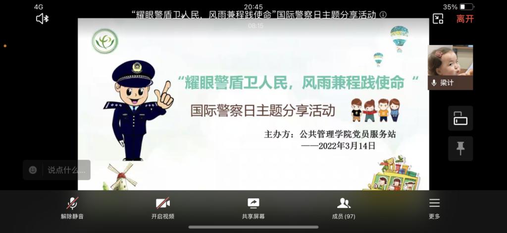当前位置: 首页 >> 学团工作 >> 学团快讯 >> 正文 【beat365中文官网党服】“耀眼警盾卫人民,风雨兼程践使命”国际警察日主题分享活动圆满结束 时间:2022年03月15日 17:49 作者: 李恒 2022年3月14日20:45,beat365中文官网党员服务站由于疫情原因由线下转为线上企业微信活动群开展的“耀眼警盾卫人民,风雨兼程践使命”国际警察日主题分享活动圆满结束,活动通过播放视频与嘉宾分享的形式带领99名入党积极分子及预备党员走进警察的生活。 活动上,首先主持人梁计播放了《黑猫警长》片段引出本次活动的主题,勾起了大家儿时想要成为一名警察的憧憬,并引发大家对于警察这一职业的好奇。紧接着又以一个短片《致敬人民警察》,让同学们了解到警察心中怀揣着的理想与热爱。 其次,由现役于重庆云阳县公安局龙角派出所工作的民警——操骐名同学给大家带来分享:《阿sir的一天》。操骐名同学的分享为大家揭开了警察这一职业的神秘面纱,让大家走进他们的日常生活,了解他们的工作,了解他们的故事。在操骐名同学分享他成为警察的这条路上的辛苦、欣喜和热爱的同时,也让同学们感受到了像人民警察这样总是将国家、社会和他人的利益放在最前面,而甘愿牺牲,甘愿辛苦的可爱的人们的无私和伟大。 最后,活动播放了警务纪实观察类真人秀《守护解放西》中的一个片段,让大家感受警察实际办理案件的过程,更加了解警察的日常生活,感受到警察对我们的守护。在活动结束后同学们发表的心得体会中,也纷纷表示通过活动了解到警察这一职业的辛苦和荣光,并表示对他们深深的敬佩和感恩。从来就没有什么岁月静好,是有人在替我们负重前行。任重,知行,致敬! 上一条:“以青春之我、创造青春之美好未来”----beat365中文官网青马工程培训会 下一条:【beat365中文官网党服】 “镌刻拼搏印记,绽放青春风采”冬季奥运会主题手抄报制作活动闭幕式圆满结束 【关闭】