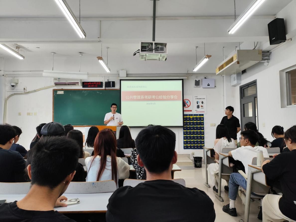 当前位置: 首页 >> 学团工作 >> 学团快讯 >> 正文 【助我成长系列活动之】 beat365公共管理系成功举办考研考公经验交流会 时间:2024年05月15日 17:30 作者: 郭爽 2024年5月15日下午2:00,助我成长系列活动之beat365中文官网公共管理系考研考公经验交流会在博智楼07417教室成功举行。系主任王长征老师、王鹏老师、20级彭诗懿和曾俊两名升研学子、刘晶露和童雨婷考公上岸学子以及50余名21级、22级公管系学生参会。交流会由学院就业联络员郭爽老师主持。 会议伊始,郭爽简要阐释了本次交流会的意义及学院2024届考研和考公的基本情况。王长征从专业发展趋势、就业状况等方面给同学们进行了具体分析,希望同学们找准目标,努力奋斗。王鹏从心态和信心两个方面,结合自身经验,鼓励同学们砥砺前行。随后,四位考研成功和考公上岸的同学依次进行了经验分享。她们从目标设定、资料搜集、时间安排、心态调整等角度出发,将宝贵的经验传授给学弟学妹们。 最后,郭爽强调,不论是考研还是考公,都是努力大于选择,希望大家能够结合自己的兴趣、能力和职业规划来选择适合自己的道路。考研和考公从成功率上来说都不是一个轻松的过程,需要付出大量的时间和努力,希望同学们能够持之以恒,坚定信念,一往无前。 本次考研经验交流会的成功举办,为公管专业大二大三年级的学生提供了重要的指导和帮助,增强了同学们备考研究生和公务员的信心。 上一条:青春倡廉|“廉洁故事我来讲”演讲比赛圆满结束 下一条:“ 科学应急,救在身边”——急救技能培训走进重庆市第二十九中学 【关闭】