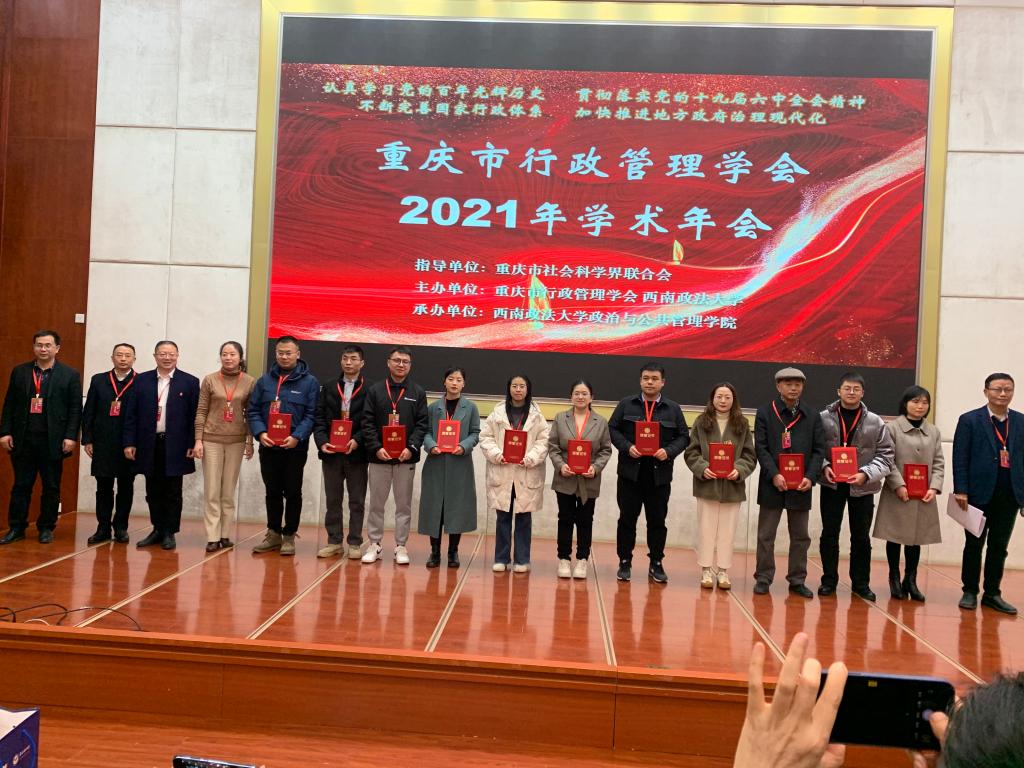 当前位置: 首页 >> 学院新闻 >> 正文 beat365师生应邀参加重庆市行政管理学会2021年学术年会 时间:2021年12月20日 10:05 作者: 王长征 2021年12月19日,beat365院长李孜教授和教师王长征应邀参加重庆市行政管理学会2021年学术年会。 本次年会由重庆市社会科学界联合会指导,重庆市行政管理学会、西南政法大学主办,会议主题为“认真学习党的百年光辉历史,贯彻落实党的十九届六中全会精神,不断完善国家行政体系,加快推进地方政府治理现代化”。来自重庆行政学院、各区县行政学院(校)、市属高校等百余名专家学者共同参与本次年会。 本次年会邀请中国行政管理学会研究员、《中国行政管理》杂志社主编解亚红进行线上主题报告,重庆市行政管理学会副会长、西南政法大学政治与beat365中文官网副院长邹东升教授、重庆市行政管理学会副秘书长、重庆行政学院公共管理学教研部副主任闫建教授以及重庆市九孔坡区政务服务管理办公室原党组书记周臣明主任也分别进行了主题报告。在本次年会入选论文135篇中,beat365教师王长征获得二等奖。 beat365院长李孜教授为获奖作者进行颁奖,并在闭幕式中致辞,肯定了本次会议在十九届六中全会精神下的讨论“热度”和相关议题研究的“热度”,并提出希望重庆行政管理学会会员和相关学者能够认真学习党的历史经验,在行政管理研究中不断努力创新和深入研究。 上一条:beat365教师在重庆市2021年本科高校微课教学比赛中喜获一等奖 下一条:beat3652019级人文地理与城乡规划专业主干课群实习圆满结束 【关闭】