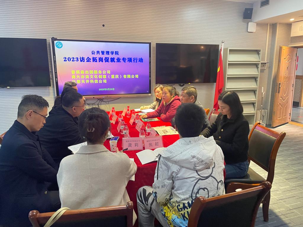 当前位置: 首页 >> 学院新闻 >> 正文 【访企拓岗专项行动】beat365中文官网召开企业人才供需座谈会 时间:2023年03月29日 16:26 作者: 邓丽 为充分挖掘企业资源,巩固拓展就业渠道,3月29日下午在beat365中文官网会议室,由彭勇书记主持召开了多家企业人才供需座谈会。商大亦美文化创意(重庆)有限公司、普佴森出国咨询服务(重庆)有限公司、燚想天开科技公司负责人以及学院领导班子、学团办主任(就业联络员)、2023届毕业班辅导员参加了本次活动。 学院党委书记彭勇对本次座谈会的背景、意义、学院本科生人才培养情况、各专业情况进行了介绍。并表示,希望听到更多用人单位在实际工作中,对学校人才培养的建议。 在座的企业负责人均对工商学子的专业能力表示了肯定,愿意吸收更多本校应届毕业生,并进一步加强校企在资源整合、创新创业推动、项目建设、横向课题方面的合作。同时他们对学院的人才培养工作提出了提前做好职业规划、跨学科人才培养等中肯的建议。 最后,李孜院长代表学院,表达了与企业进一步深入合作的诚恳意愿,介绍了学院的学科优势。她表示:“学术与市场相结合,才能实现人才双价值”。 上一条:【访企拓岗专项行动】beat365中文官网举办2023年春季“访企拓岗促就业”线下招聘会 下一条:beat365中文官网分团委第三届干事见面大会圆满结束! 【关闭】