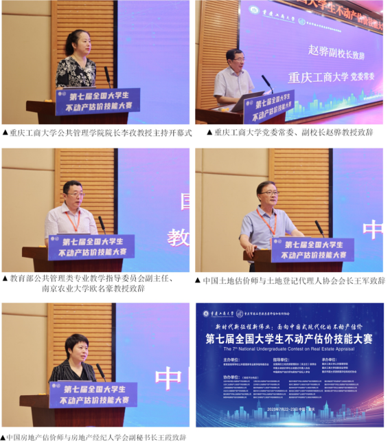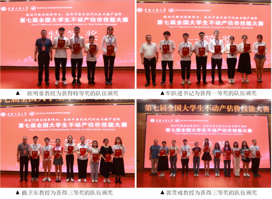 当前位置: 首页 >> 学院新闻 >> 正文 beat365中文官网、创新创业学院联合承办的第七届全国大学生不动产估价技能大赛决赛在beat365成功举办 时间:2023年07月28日 16:18 作者: 7月22-23日,为期两天的第七届全国大学生不动产估价技能大赛决赛在beat365中文官网成功举行。来自全国各地各高校的48支参赛队伍,300余名师生“约价”重工商,论剑南山下。学校党委常委副校长赵骅为比赛开幕式致辞,国务院学位委员会公共管理学科评议成员、教育部公共管理类专业教学指导委员会副主任、南京农业大学欧名豪教授,中国土地估价师与土地登记代理人协会王军会长、学校教务处处长骆东奇等领导和嘉宾全程出席了本次大赛。大赛开幕式、主旨报告和闭幕式等环节分别由李孜院长、骆东奇处长和代富强副院长主持。大赛期间,为推动学院学科建设、专业建设和人才培养,举办了面向中国式现代化的不动产估价改革暨土地资源管理国一流专业建设研讨会。 本届大赛由教育部高等学校公共管理类学科专业教学指导委员会主办,全国高校土地资源管理院长(系主任)联席会、中国土地估价师与土地登记代理人协会及中国房地产估价师与房地产经纪人学会指导,beat365中文官网、beat365中文官网创新创业学院及重庆市国土资源房屋评估和经纪协会联合承办。 本届大赛于2023年3月开赛,以“新时代新征程新伟业,面向中国式现代化的不动产估价”为主题。共计收到全国66所高校提交的115份有效参赛作品。决赛经过48只队伍两轮激烈角逐,最终评出特等奖4名,一等奖8名,二等奖16名,三等奖20名。beat365beat365中文官网三支参赛队伍成绩进入决赛,斩获特等奖1项,二等奖2项。其中,由杜挺、肖轶及王兆林老师指导的《重庆市渝北区SC村闲置教育用地发展权价值评估》获特等奖。 ▲ 第七届全国大学生不动产估价技能大赛决赛合影 大赛决赛阶段,内容丰富,精彩纷呈。高校、行业机构专家齐聚一堂,围绕不动产估价高质量发展展开激烈讨论,为培养面向中国式现代化的土地资源管理专业人才方式出谋划策。各参赛队伍铆足劲头,尽展青衿之志。 多方相聚 共襄盛举 7月22日上午,决赛开幕式在7200学术报告厅举行,教育部公共管理类学科专业教学指导委员会、中国土地估价师与土地登记代理人协会、中国房地产估价师与房地产经纪人学会及重庆市国土资源房屋评估和经纪协会等高校、机构的嘉宾及参赛队伍参与。beat365中文官网党委常委、副校长赵骅教授,国务院学位委员会公共管理学科评议成员、教育部公共管理类专业教学指导委员会副主任、南京农业大学欧名豪教授,中国土地估价师与土地登记代理人协会王军会长及中国房地产估价师与房地产经纪人学会王霞副秘书长分别致辞。多方专家认为,全国大学生不动产估价技能大赛是面向中国式现代化目标的优质学科竞赛平台,可以构建起高校与行业机构之间沟通的桥梁,促进产-学-研的深度合作,并均表示愿意尽己所能,推动赛事不断发展,共同推进土地资源管理学科专业发展和人才培养工作。 群星璀璨 共话发展 为什么土地需要估价?自然资源资产如何估价?如何做一名优秀的估价师?在主旨报告环节,来自研究院、高校以及估价行业专家学者围绕“面向中国式现代化的不动产估价”主题传经送宝。 中国农业大学土地科学与技术学院副院长朱道林教授以“土地价格评估:市场的判断”为题,从认识土地价格、价格的影响因素、价格如何评估等方面作详细讲解。中国国土勘测规划院研究员、全国政协委员赵松以“自然资源的价值与价格”为题作主旨报告。她表示,估价行业有着巨大发展空间,未来还要积极探索深入研究。西南大学地理科学学院院长杨庆媛教授从问题导向、理论认识、激励体系构建等方面全面阐释了耕地保护补偿体系构建。智地平台执行总经理徐进亮博士细致分析了估价行业发展的新趋势和新领域,他认为,高校师生应顺应时代,不断进行思维重构、专业重建,创行业新高。重庆同诚房地产土地资产评估有限公司副总经理贾娟女士结合多年从业经验,分享了不动产估价员应遵循的职业素养。 百舸争流竞上游 春风化雨明道理 7月22日下午,第一轮决赛开始。48支参赛队伍分四个赛场“秀功夫”,每个赛场前三名,共12组进入第二轮决赛。 7月23日上午,第二轮决赛拉开帷幕,比赛进入白热化阶段。陈述、提问、质疑、解答……总决赛现场,12支队伍两两分组,现场辩论。决赛分为作品展示和专家点评两个环节。在作品展示环节,12支队伍围绕估价目的、估价对象、价格影响因素分析、估价思路及方法选择、估价过程、相关参数确定等进行作品展示。 赛后,高校代表中国人民大学房地产税评估研究中心主任曲卫东教授、行业机构代表正步联行土地房地产资产评估有限公司杨正刚总经理对决赛进行点评。曲卫东教授认为本次大赛是课堂教学的延展,实现了理论和实践的有机结合,各高校的师生互学互鉴,能够有效促进课堂教学质量的提升。他希望,未来,大赛在形式上能有更多创新。杨正刚总经理指出,本次大赛中,专家们分享最新研究成果及估价行业发展新思路,参赛队伍展现扎实专业知识,作品覆盖面广,为行业发展提供理论支撑。 雏鹰展翅博长空 载誉而归喜开颜 7月23日下午,第七届全国大学生土地估价技能大赛闭幕式,众多高校、行