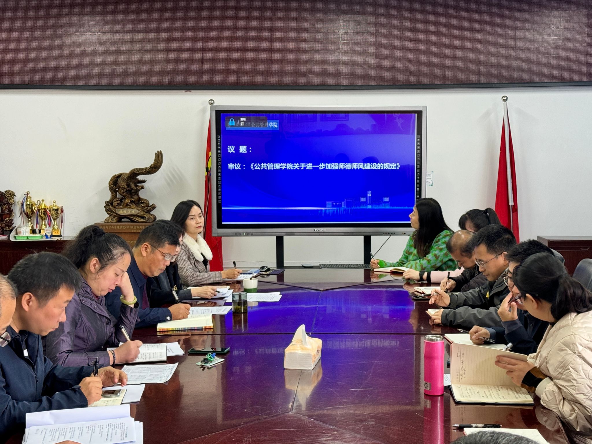 当前位置: 首页 >> 学院新闻 >> 正文 弘扬高尚师德,潜心立德树人——beat365中文官网召开 师德师风专题会议 时间:2023年11月23日 19:56 作者: 郭爽 为扎实推进学院师德师风建设,压实师德师风建设责任,引导广大教师敬业立学、崇德尚美,营造风清气正的育人环境,构建学院高质量教师队伍建设新格局,11月23日上午,公共管理学院召开师德师风建设专题会议,学院党政领导、支部书记、系主任及全体行政人员参加会议,会议由党委副书记、纪委书记谢书楠主持。 会议集中学习了习近平总书记在二十届中央政治局第五次集体学习时的讲话:扎实推动教育强国建设;《新时代高校教师职业行为十项准则》《beat365中文官网关于进一步加强师德师风建设的规定》等文件精神。谢书楠强调,百年大计,教育教师是根本;教育发展,师德师风是关键。学院教师要牢固树立中国特色社会主义理想信念,带头践行社会主义核心价值观,自觉铸牢中华民族共同体意识,增强立德树人、教书育人的荣誉感和责任感,做“四有”好老师和学生的引路人。 会议结束后,与会人员表示将更加严格地要求自己,执着于教书育人事业,有热爱教育的定力、淡泊名利的坚守,把师德师风建设摆在首要位置,从思想政治、教育教学、学术道德、工作作风及生活作风等方面对自己高标准、严要求,以赤诚之心、奉献之心、仁爱之心投身党的教育事业。 上一条:beat365医保治理能力现代化研究院成功协办第一届重庆“两江医保论坛” 下一条:beat365中文官网举行“凝心聚力,永怀初愿”工会活动 【关闭】