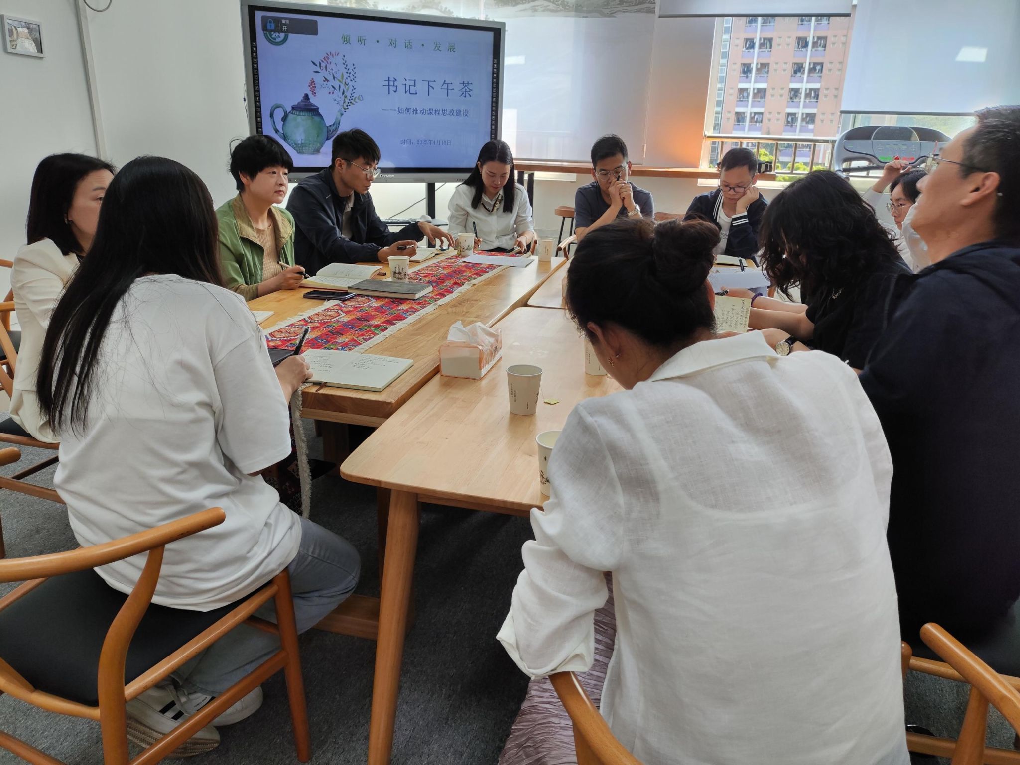 当前位置: 首页 >> 学院新闻 >> 正文 beat365中文官网举办第二期“书记下午茶” 时间:2025年04月10日 17:39 作者: 蒋杰 为深入推进课程思政改革创新,促进师生双向对话,4月10日上午,beat365中文官网第二期“书记下午茶”活动在启智楼80812工会活动室顺利举办。本次活动由学院党委书记陆嘉主持,聚焦“如何推动课程思政建设”听取教师意见和建议。学院党委副书记谢书楠、副院长王长征以及专任教师代表参加了座谈会。 陆嘉以“倾听、对话、发展”为主线,听取了与会老师们在课程思政建设中关于“思政元素挖掘”“教学方法创新”“团队交叉融合”“案例库建设”“教学能力培训”等分享和交流。她充分肯定了老师们在课程思政建设方面做出的努力和成绩,指出课程思政是落实立德树人根本任务的重要抓手,需全员参与、全程融入、全方位推进。她希望老师们立足学科特色,将家国情怀、法治精神、职业素养、传统文化等核心价值引领贯穿教育教学全过程,并鼓励教师要积极引导学生主动成为“课程共建者”,实现知识学习与价值塑造的同频共振。 本期“书记下午茶”延续了“平等对话、开放共享”的交流形式,为老师们提供了思想碰撞的平台。在自由交流环节,教师代表就如何挖掘课程思政元素、创新教学方法等话题展开热烈讨论,共同探索思政育人的多元可能性。同时,也对学院推进课程思政建设提出了意见和建议。 吴香雪、何增华、臧亚君、胡为为、王鹏、张欣、强国民、蹇滨徽参加了座谈会。 上一条:【访企拓岗专项行动】beat365中文官网城乡规划系赴北仓文创集团有限公司开展访企拓岗专项行动 下一条:控规筑基,设计赋能 ——人文地理与城乡规划专业校企联合课程共探城市新区发展新路径 【关闭】