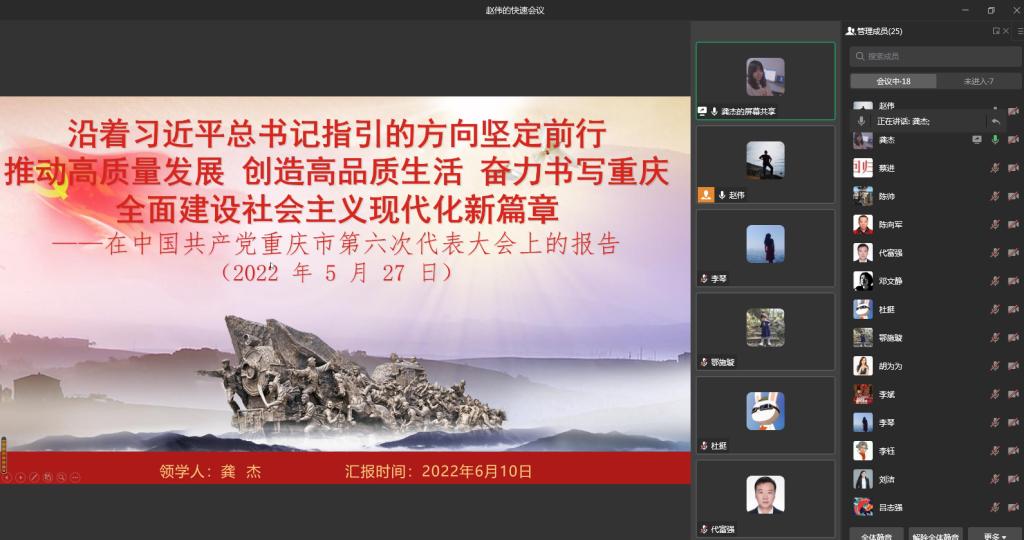 当前位置: 首页 >> 党建双创 >> 正文 beat365中文官网党委所属各支部开展学习中国共产党重庆市第六次代表大会精神主题党日活动 时间:2022年06月13日 16:14 作者: 根据校党委组织部统一学习工作部署,学院党委所属各支部分别以不同形式全面开展学习中国共产党重庆市第六次代表大会精神主题党日活动 。各支部的学习活动分别由所在支部的支部书记主持。 6月9日,教工第一党支部开展线上学习活动,由周重阳同志领学;学生第二党支部开展线上学习活动,由胡渝林、晋莉华两位同志领学; 6月10日,教工第二党支部开展线上学习活动,由龚杰同志领学;学生第一党支部在启智楼81004会议定开展学习活动,由王巧洪同志领学。各支部深入学习了陈敏尔同志在会上作的题为《沿着习近平总书记指引的方向坚定前行 推动高质量发展 创造高品质生活 奋力书写重庆全面建设社会主义现代化新篇章》的报告。 领学后,与会同志针对报告内容谈心得说体会,开展了深入交流讨论活动。学生党员熊玲同志说:“我们要深化理论武装,持续学懂弄通做实习近平新时代中国特色社会主义思想”;彭加佳同志说:“我们要弘扬优良作风,始终保持党同人民群众的血肉联系,作为学生党员我们也要做到密切联系群众,加强与群众的联系沟通”; 教工第二党支部书记赵伟说:“过去5年,重庆市各项事业取得了长足的进步与发展,我们支部建设也迈上了一个新的台阶,国家“样板支部”创建验收顺利通过,这即是对我们支部工作的肯定也是对我们工作的鞭策,我们要深刻学习领会会议精神,结合我们工作实际,结合专业学科特点,主动作为、有所作为,推进支部建设,促进学院发展,积极服务社会,以实际行动迎接党的二十大胜利召开”。 上一条:【党课开讲啦】beat365中文官网教工第二党支部书记赵伟为学生党员及入党积极分子讲党课 下一条:beat365中文官网学生第一党支部召开党员大会及组织生活学习会 【关闭】