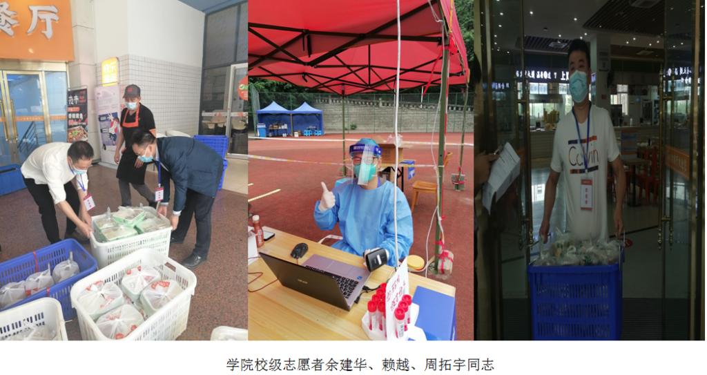 当前位置: 首页 >> 党建双创 >> 正文 【“疫”路同心,一路同行】“疫”路同心 一路同行——记beat365中文官网志愿者队伍 时间:2022年10月20日 08:14 作者: 2022年10月11日凌晨,因新冠肺炎疫情来袭,学校立即实行临时管控。学院党委积极响应校党委号召,10月12日清晨学院在教职工及学生发出志愿者征集通知,全院师生积极响应,踊跃报名参与疫情防控志愿工作。经学院领导小组进行统筹安排,先后向学校推荐5位老师作为校级志愿者(3位成行),同时在学院组建校内抗疫一线、外围保障、学生楼栋服务、紧急备用等不同类型的师生志愿者队伍。 坚实守护:校级志愿者——抗疫中最坚硬的铠甲 “你们是学校抗疫一线最坚硬的铠甲,你们用最果敢的行动、最温软的内心呵护校园的一片宁静”。抗疫过程中,beat365先后成功向学校推荐有部队经历赖越、周拓宇及学院副院长余建华等3名党员同志,参加由学校统一调用的志愿者服务队伍。 赖越同志在本次疫情发生前,已作为志愿者,参与到学校的日常核酸检测之中,维持检测队伍秩序、录入师生检测信息……在疫情刚开始时,为解决后顾之忧,支持丈夫进入校内抗疫一线,妻子毫不犹豫带着年幼孩子去上班(市内中学教师),匆匆安顿家庭生活,第一时间向学院申请,并顺利投入到学校抗疫工作中去,担任核酸检测员。面对要求高、强度大的核检志愿者工作,他并没有抱怨,全身心地投入到工作之中,扫码登记、提醒同学保持间距、根据实时人流量引导师生至合适的检查点……一句话、一个动作,重复了无数遍,他很快成为了“熟练工”,在一日工作的微信圈中他骄傲地发了一则信息:战斗四天,成功晋级,“蓝朋友”变“大白”。赖越同志在一线战“疫”中迸发出的乐观主义与浪漫主义精神,令人动容。他默默奉献,乐于助人,在学校的志愿工作忙完后,又回到学院里面,任何情况下他都愿意“冲上去、扛下来、举起走”,忙完所有的事情一个人又默默地在走廊、在过道,悄悄给妻子打电话,关心家人的情况。 周拓宇同志在校级志愿者服务队伍中,被分配到为管控区的学生配送食物,作为学校为学生送餐队伍中的一员,他每天总是提前到达食堂配餐处,试餐、搬运、送餐,学生的一日三餐都是由他们协助餐饮服务人员打包、装箱,搬运到运餐车上。他自称是学生“胃”您着想、“肠”您所愿的“三餐守护者”。每天忙碌完,总是最后一个回学院吃饭的,饭菜凉了,说给他热一下,他总是说:有什么吃什么。总是匆匆吃上几口,又去帮忙其他同事完成院内事务。 周拓宇和赖越两位同志,“退役不褪色”,“疫”线显担当,在志愿工作中充分体现了“特别能吃苦、特别能战斗、特别能奉献”优秀品质。 学院副院长余建华同志,被分配到餐饮质量核检及配送工作中,每天清晨到岗检查菜品质量和分量、餐前对每个菜品进行品尝、协调学生楼栋、进行送货、帮忙送饭上车……在疫情管控期间,余建华同志还有为学生上课的任务,每次他下课后都是急匆匆小跑到食堂参与配送工作。学院新闻采集的同志感慨道:想给余院长拍几张工作照片,但是他连摆个Pose的时间都没有,只好抓拍了几张。 beat365参加校级志愿者3位同志,他们是我们学院党员中的优秀代表,他们为同学们筑起温暖的堡垒,他们以实际行动证明了——他们是抗疫中最坚硬的铠甲。 青春力量:你们是最青春靓丽的一道风景线 “岁月因青春慨然以赴而更加静好,世间因少年挺身向前而更加瑰丽”,封控期间,同学们足不出户,疫情的阴霾笼罩着校园,由学生党员、入党积极分子为主体组建的beat365中文官网的青年志愿者,他们扛起重任,当起主力,迸发出了磅礴的青春力量。 楼管会的志愿者们,他们提醒同学们做核酸和领饭,积极协助负责老师和辅导员,为同学们送菜送饭,检查饭菜质量,维护核酸和用餐秩序,做好记录,做到不漏一人,不丢一人,为同学们带去问候;2020级公共管理的学生曾洁和万欣,两个瘦弱的小女生看起弱不禁风,作为学院主体楼栋楼长,在抗疫紧要关头,面对为同学发饭、督促大家做核酸、调解楼栋同学情绪这些琐碎小事上从来不含糊,为提高工作效率,在实际操作中不断优化工作程序。 他们逆着人群而行,向着图书馆方向前进,回来时,他们手拿行李箱,装载着考研的同学们的希望,他们拖着重重的书本奔赴新北22-24楼栋,为努力备战心中焦急的同学们送去温暖。 “夜暗方显万颗星”,他们在抗疫一线不辞辛苦,不求回报,热情洋溢,无私奉献,面对危险无所畏惧,面对困难毫不退缩,面对挑战勇往直前,不论在哪个岗位,他们都在用行动诠释着青春的力量,始终与学校同心抗“疫”!充分展现了他们青春该有的模样,成为校园中是最青春靓丽的一道风景线。 勇者不孤:我们拥有最强大的志愿者后勤队伍 “你们在前方抗击疫情,我们在后方温暖守护”。有这样一对抗疫“夫妻档”, 他们的家在校内家属区,妻子毛小娟,是beat365中文官网的一名普通行政人员,丈夫胡磊是体育学院一名普通专任教师,在学校疫情狙击关键期,他们没有选择“宅”在家里,而是主动请缨,毅然投身于这场抗“疫”狙击战中,毛小娟老师选择加入了公管院级志愿者,胡磊老师作为校级志愿者被安排在管控最严格的新北24栋负责防控工作,他们奔忙在抗疫一线,服务于管控区的师生。他们是彼此最坚强的后盾,同心抗疫,共克时艰。 “你们被子