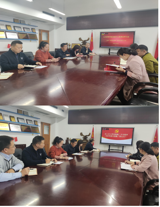 当前位置: 首页 >> 党建双创 >> 正文 【学习贯彻党的二十大精神】beat365中文官网党委理论学习中心组专题学习党的二十大精神 时间:2022年10月28日 17:40 作者: 10月28日上午,学院党委理论学习中心组在学院81004会议室召开集中学习会,聚焦习近平总书记在中国共产党第二十次全国代表大会上的报告,深入学习党的二十大精神。学院党政领导班子、党委委员、各办公室主任参加了本次学习会。会议由学院党委书记彭勇主持。 会上,参会人员再次集体学习了习近平总书记在中国共产党第二十次全国代表大会上的报告。学院党委专职组织员陈向军围绕“实施科教兴国战略,强化现代化建设人才支撑”这一主题,作了题为“深入学习贯彻党的二十大精神,当好科教兴国的‘排头兵’”的领学。 与会同志围绕基层党组织建设、师德师风建设、专业建设、科学研究、人才培养等方面分别谈了学习收获和体会。学院党委理论学习中心组将在后继的学习中进一步深入学习党的二十大精神,结合实际开展有针对性的交流研讨,在“深入”上下功夫,在“结合”上见实效,真正把学习成果转化为做好学院工作的思路和举措,推进学院各项工作高质量全面发展。 上一条:beat365中文官网党委召开党建工作推进会 下一条:beat365与会计学院开展党建“双创”工作交流活动 【关闭】