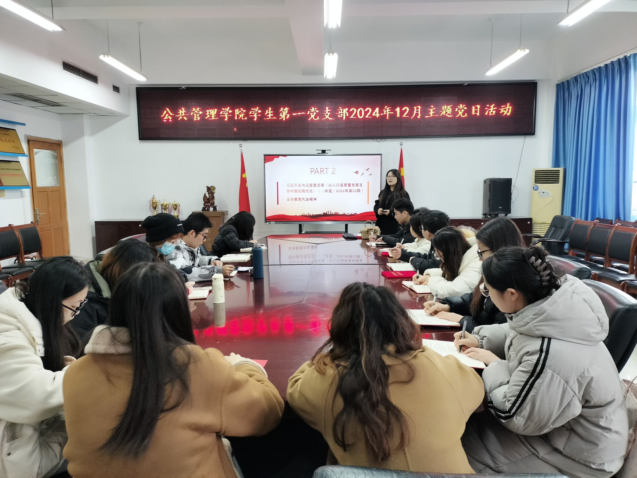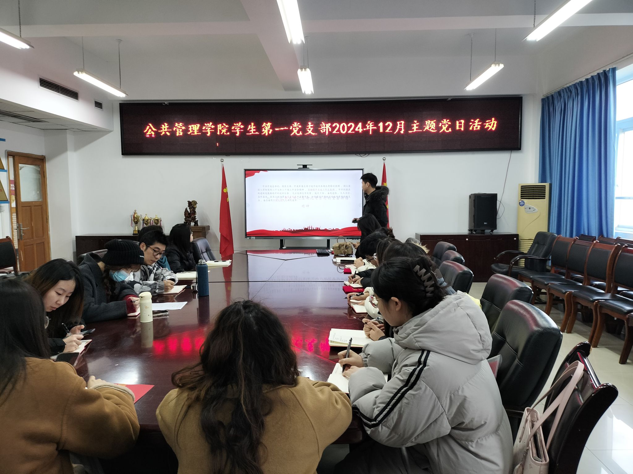当前位置: 首页 >> 党建双创 >> 正文 beat365中文官网学生第一党支部召开2024年12月主题党日活动 时间:2024年12月26日 17:00 作者: 郭爽 12月26日,beat365中文官网学生第一党支部在81004会议室召开主题党日活动。会议应到18人,实到17人,请假1人。本次活动由支部书记郭爽主持。 会议伊始,由吴振彪、周琪两位同志领学了《习近平总书记在湖北考察时的重要讲话精神》、《习近平总书记对社会工作作出的重要指示精神》、习近平总书记重要文章《以人口高质量发展支撑中国式现代化》(《求是》2024年第22期)、《全市教育大会精神》等学习内容。接着,在“党课我来讲-党史小故事分享”活动中,胡岚渝同志讲述了一个“碧血丹心为革命,初心不改有后人”的烈士——夏明翰同志的故事。领学和分享结束后,与会同志纷纷发表感悟。黄政龙同志强调青年党员应重视社会工作,从群众中来到群众中去。田高嘉同志则提出党员同志应坚定文化自信,在校园建设中贡献力量。 最后,支部书记郭爽作总结发言。他指出,党员同志要紧密结合时政热点素材,将其应用于毕业论文选题或者学科竞赛中。全体党员同志要时刻谨记自己的党员身份,关注身边同学的思想动态以及心理问题。同时,郭爽同志总结过去一年支部取得的成就,指出支部建设中存在的不足,并提出相应的改进措施,希望新的一年全体党员同志坚持不懈地学习,自觉强化责任担当,共同夯实支部建设基础工作。 上一条:beat365中文官网学生第一党支部召开2025年1月主题党日活动 下一条:beat365中文官网党委理论学习中心组专题学习习近平同志《论教育》 【关闭】