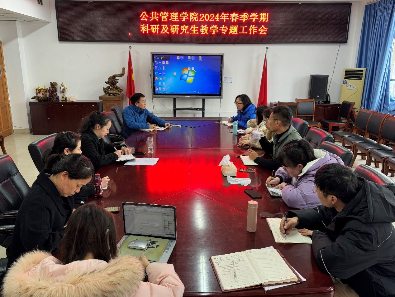 当前位置: 首页 >> 科学研究 >> 正文 学院召开2024年春季学期科研及研究生教学工作专题会 时间:2024年03月08日 11:33 作者: 赖越 2024年3月7日,学院组织召开2024年春季学期科研及研究生教学工作专题会。会议由分管科研及研究生教学工作的余建华副院长主持,李孜院长及学院科研平台负责人、各学科点负责人、MPA教育中心负责人及相关工作人员参加。 本次会议重点就本学期学院科研工作及研究生教学工作进行总体部署安排和讨论研究。会上余建华副院长先组织传达学校及研究生院关于科研及研究生教学相关重要通知精神,并就学院组织开展科研学术活动交流、哲学社会科学重点实验室申报筹备、“两金”项目申报工作等重点工作进行了讨论研究;而后就本学期研究生教学工作中的重要环节进行了部署安排,重点围绕研究生培养方案修订、研究生教学技能大赛筹备、学科交叉融合、研究生教改项目申报等工作进行深入讨论并形成初步方案。 余建华副院长强调2024年是实施“十四五”规划的关键年,要充分认识到全面提升学院科研高质量发展水平、学科建设与研究生培养质量的重要性和紧迫性,在凝练科研主攻方向的基础上,要持续加强科研团队建设,涵养浓厚科研氛围,争取高水平科研成果产出,同时要不断优化研究生培养环节,抓紧修订相关学位点研究生培养方案, 要坚持严格遵循科学道德准则和学术研究规范,聚力营造优良学术氛围和学风作风。最后李孜院长强调要坚持党建引领推动有组织科研,充分发挥组织保障作用,积极破解制约学院科研工作发展的瓶颈,凸显学院学科特色和平台团队优势,也要和学院的研究生人才培养紧密结合,要坚持学生为本,同时严把方向关、质量关和导师关,在提高研究生培养质量上下真功夫。 上一条:重庆市卫健委人口家庭信息中心唐东主任一行到访beat365中文官网人口发展与政策研究中心开展合作共建工作 下一条:余建华副院长代表beat365参加数据科学与应用学科联盟启动仪式并作会议交流 【关闭】