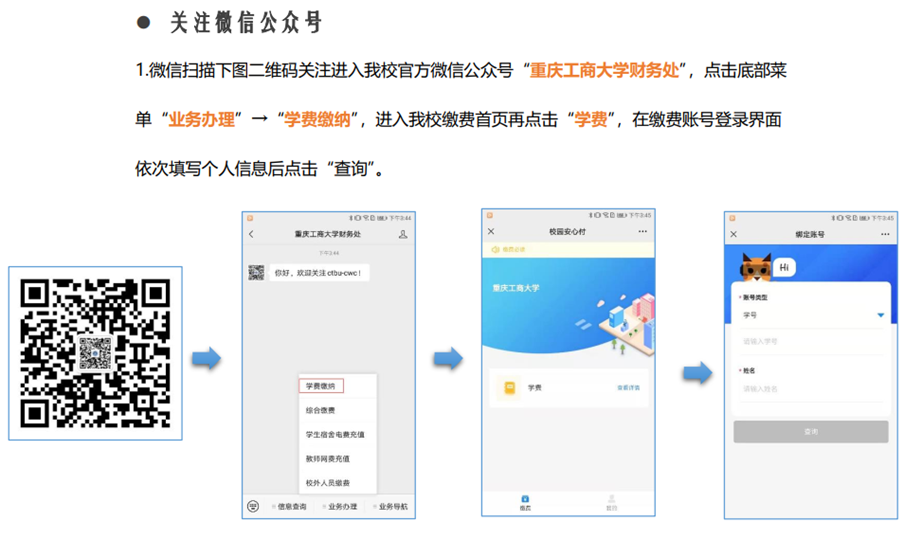 当前位置: 首页 >> 招生就业 >> 研究生招生 >> 正文 beat365中文官网2024级MPA研究生入学报到须知 时间:2024年07月04日 15:36 作者: beat365中文官网2024级MPA研究生 入学报到须知 亲爱的新同学: 您好!首先祝贺您成为beat365中文官网2024级研究生中的一员,我们热忱欢迎您的到来!为了您能顺利报到,请认真阅读以下内容,并按要求做好相关准备: 一、报到时间、地点 报到时间:2024年9月7日(星期六)12:00—16:00。 报到地点:重庆市南岸区学府大道19号beat365中文官网启智楼1004会议室。 新生须凭《录取通知书》、毕业证书、身份证原件在规定时间内到beat365中文官网南岸校区办理入学手续,报到时准备本人近期1寸免冠照片三张(背面需写上录取专业、姓名),供入学后办理相关证件使用,同时需现场提交《beat365中文官网定向培养硕士研究生协议书》一式三份(附件下载,双面打印,需用人单位盖章)。 二、缴费 住宿:MPA全日制定向培养硕士研究生均不提供住宿。 学费:全日制专业学位硕士13000元/生/年。按上级有关规定,新生须缴纳学费后方能注册入学。 请新生在8月下旬后采取自主方式缴费。所有同学登录方式均为姓名+学号(或姓名+身份证号)。请按如下指引及时缴纳学费: 财务系统微信公众号客服电话:400-028-1024。 三、请假 因故不能按时报到的,须由相关组织出具有效证明,向学院请假,请假一般不得超过两周。未请假或者请假逾期的,除因不可抗力等正当事由以外,视为放弃入学资格。 四、体检 新生入学前将参加入学体检,未参加入学体检的学生不予注册学籍,请同学们合理安排体检时间。 体检时间:关注学校官网或研究生院网站“通知公告”栏后续通知。 体检地点:校医院(学校二号门出入口处)。 五、其他 1.MPA定向培养研究生均不需要寄送档案、转接党团组织关系及迁移户口。 2.新生赴校路费、行李托运等均由本人自理。 3.开学典礼及入学教育初定于2024年9月7日上午,具体时间及地点以学院官网通知公告为准。 4.本入学须知未尽事宜和最新信息请及时关注学校研究生院网站、beat365中文官网研招办微信公众号及beat365中文官网网站。 学校网址:http://www.ctbu.edu.cn/ 研究生院网址:http://grs.ctbu.edu.cn/ beat365中文官网网址:https://spm2014.ctbu.edu.cn/ 电话:023-62768285 附件【定向培养硕士研究生协议书.doc】已下载次 上一条:城乡规划学硕士研究生2025年招生宣传视频 下一条:beat365中文官网公共管理硕士(MPA)研究生2024年招生简章 【关闭】