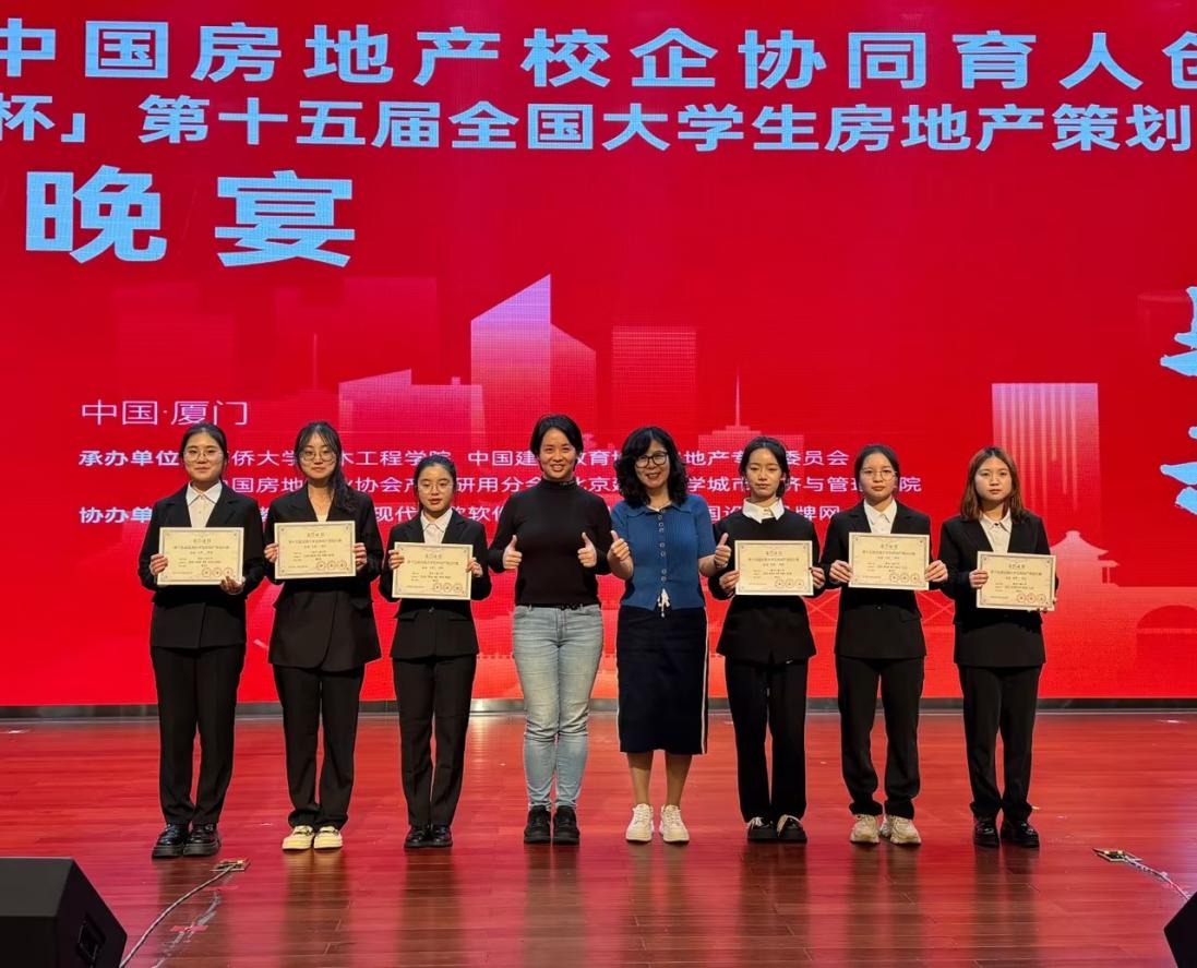 当前位置: 首页 >> 教学动态 >> 正文 beat365在第十五届全国大学生房地产策划大赛中斩获一等奖 时间:2023年11月16日 14:09 作者: 臧亚君 11月12日,由中国房地产业协会、中国建设教育协会主办的第十五届全国大学生房地产策划大赛总决赛在华侨大学厦门校区举行,由beat365土地资源管理专业教师臧亚君、邓文静老师带队的3支队伍获得一等奖1项,二等奖2项,同时臧亚君老师荣获“优秀指导教师”称号,beat365被评为优秀组织奖。 本次大赛总决赛有170支高校队伍同台竞技,吸引了包含清华大学、同济大学在内的300多所高校、约1.2万名大学生报名,赛事设置上由往年的传统住宅开发向文旅运营、乡村振兴多元复合的方向扩展,进一步助推产教融合发展,最终有29支队伍获得一等奖。beat365参赛队伍在决赛中表现优异,脱颖而出:由2021级土地资源管理专业、人文地理与城乡规划专业、工商管理专业、市场营销专业的学生彭钰丹、吕文诗、杨彩月、曾玲媛、林欢组成的代表队凭借作品“鹭海林悦”获得全国一等奖;由2021级土地资源管理专业、经济学专业、环境工程专业、数据计算及应用专业的学生任怡佳、赖程欣、魏浩楠、徐曼、钟鹏程凭借作品“鹭屿林湾”获得全国二等奖;由2021级人文地理与城乡规划专业、土地资源管理专业、贸经专业、环境设计专业的学生周美龄、曾璐、周森菱、樊瑜渝、刘梦涵凭借作品“鹭卿南韵”获得全国二等奖。 学院将会继续贯彻OBE理念,以应用型创新型人才培养为核心,构建以“训、赛、研、用”为导向的实践教学体系,“课赛训”一体化推进、无缝对接,不断提高学生的实践能力与竞技水平,开拓学校师生格局和视野、把握前沿知识、强化实践创新。 上一条:beat365教师参加2023年全国人文地理与城乡规划一流专业建设研讨会 下一条:beat365教师参加第二十届全国高校土地资源管理院长(系主任)联席会暨2023年全国土地科学论坛 【关闭】