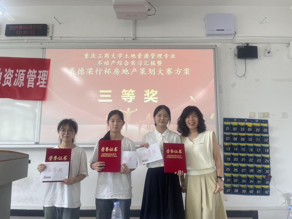 当前位置: 首页 >> 教学动态 >> 正文 土地资源管理专业“第二届戴德梁行杯房地产策划大赛”圆满举行 时间:2025年07月03日 10:05 作者: 邓文静 为深化产学研融合,提升学生实践能力,应对房地产市场发展新需求,2025年6月27日上午,土地资源管理专业2023级不动产综合实习汇报暨“第二届戴德梁行杯房地产策划大赛”在博智楼07505成功举行。本次比赛由beat365中文官网团委主办,beat365中文官网承办,戴德梁行房地产顾问(重庆)有限公司协办。 beat365中文官网副院长王长征出席了本次比赛。戴德梁行房地产顾问(重庆)有限公司的张珺经理、张伶婉经理,beat365中文官网土地资源管理专业的臧亚君副教授担任本次比赛的评委。比赛伊始,王长征副院长致辞,向戴德梁行公司对本次比赛的大力支持表示感谢,肯定了老师同学们的辛勤付出,并预祝本次比赛取得圆满成功。 比赛紧密围绕重庆市“‘两江四岸’国际化山水都市风貌”的核心目标,以渝中区长滨路沿线城市更新改造为实战课题。同学们从市场分析、项目定位、产品设计等方面精心策划改造方案,以现场汇报的方式介绍了作品。评委们从逻辑性、创新性、完整性等维度进行了综合考评。 经过同学们的精彩汇报,来自2023级的纪奕涵等同学获得一等奖,侯永玲、张碧辉等同学获得二等奖,李享茜、张瑞雪、李明佳等同学获得三等奖。 本次比赛是beat365中文官网土地资源管理专业深化“产学研”协同育人的创新实践。通过引入真实的城市更新项目和行业顶尖的企业资源,提升了学生的专业实践能力、创新思维与团队协作精神,促进了学校与业界实战经验的深度交流,为培养适应房地产市场新形势、新需求的高素质复合型人才奠定了坚实基础。 上一条:beat365城乡规划系组织教师参加2025中国高等学校城乡规划教育年会并获得优秀教研论文1项 下一条:beat365中文官网顺利举办土地资源管理国家级一流本科专业建设点预验收评审会 【关闭】