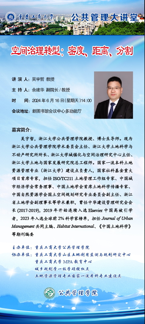 当前位置: 首页 >> 科学研究 >> 学术讲座 >> 正文 公共管理大讲堂——空间治理转型:密度、距离、分割 时间:2024年06月10日 19:44 作者: 上一条:公共管理大讲堂——浙江大学beat365中文官网吴宇哲教授做“空间治理转型:密度、距离、分割”学术讲座 下一条:beat365城乡规划系教师受邀参加2024第二届山地人居环境学术研讨会并作主题报告 【关闭】
