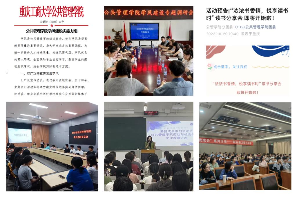 当前位置: 首页 >> 学团工作 >> 共学社区 >> 正文 beat365中文官网以“共学社区”理念积极推进“一站式”学生社区建设 时间:2023年11月13日 16:55 作者: 刘乂萌 beat365中文官网以“共学社区”理念积极推进“一站式”学生社区建设 学生社区是学校教育、关心、联系、服务学生的神经末梢,beat365中文官网一直以来坚持以“让学生过完整幸福的大学生活,构建一个所有人向所有人学习的成长型社区”为核心理念,致力打造“共学社区”,通过创造多元共生的教育环境,达成教育各主体之间、相互促进、共同成长。 一、以“共学”筑信仰之基,全“寓”共创党建新高地1. 全“部”共学,合力共驻 为加强思想价值引领,在学生社区打造党团建设前沿阵地,学院制定了《beat365中文官网教工党支部与学生党支部结对共建实施方案》,教工第二支部(全国党建工作样板支部)+学生第一支部(学校党建工作样板支部)结对“双引擎”共驻学生社区,“赵伟支部书记工作室”挂牌党员服务站,合力驱动学生社区功能型党支部的建设与发展。学院依托社区党支部、楼栋党小组、党员寝室协同强化阵地建设,在学生社区设立党员先锋岗、实行党员寝室挂牌、党员信息上墙、党员服务上榜、党员事迹上网,连续3年推动毕业生党员撰写心中“四有好老师”文集,设置专栏,实现党性浸润由平面化向场景化转变。 2.全“寓”共学,培养共进 学院突破传统学生公寓组织、服务、空间的壁垒,以“共学、共建、共识”筑信仰之基,构建党建学习品牌矩阵,利用理论学习与实景课堂相结合,自主学习与集中研讨相结合,固定学与比拼学相结合的形式坚持“三会一课”学习制度,扎实推进贯彻落实习近平新时代中国特色社会主义思想主题教育,每月评选“学习强国标兵”。除固定学习内容外,社区支部设有“一带一路与你相遇”文化汇、“党员5分钟小故事会”以及“四史”等知识竞赛,在重要节点组织开展“爱国主义教育基地实景式党性锤炼”主题党日活动,让全体学生党员以切实的体验感、获得感进行红色文化学习,将党建引领在学生社区做深、做实、做活、做透。 二、以“共学”助成长之力,全“院”共促学风新气象 1.师生共学,勤学明志 学院致力于将学生社区建设成为“人人可学,处处能学,时时皆学”的学习成长型社区,打破“教师中心论”“学生中心论”的限制,强调师生共同成长,构建“所有人向所有人学习”的共生型师生关系。2023年9月,制定《公共管理学业学风建设实施方案》《beat365中文官网学工队伍与教学队伍联动工作机制》,学院围绕学生成长成才,积极推进“思想引领、能力提升、学术培育”为核心的“三个课堂”联动机制。学院领导、辅导员、学业导师、党员先锋下沉社区以身作则,针对重点困难学生实施“四位一体”帮扶措施,精准落实“一生一策”。师生共同参与四个“共学”社区品牌活动——“助我成长”系列活动、“最美笔记”、“季度阅读之星”和“月月读书分享会”。全院教师秉持“好读书、勤治学、德立身”精神做优良学风的倡导者、实践者、示范者,营造浓烈学习氛围,共促beat365学风新气象。 2.生生共学,善学增智 独学而无友,则孤陋寡闻。全院学子在“共学”社区凝聚共同志趣,描绘共同愿景,借由对话、讨论、反思的过程使知识和技能流动起来,构建一个从“我”到“我们”的社区学习团体,尊重彼此,互助成长。设有“楼栋共学自习室”“小组共学讨论室”“脱机自习室”,挂牌“文明寝室”“学习优秀寝室”。举办了“生涯叙事,成长之路”校友进课堂,“经验分享共成长,博采众长向远方”朋辈学习交流分享会,成立了“学生讲师团”“学业答疑团”“学风督察小组”。结合学院专业特色、学生特点、社区实情拟在“共学社区”建设“学‘习’时刻,时刻学‘习’”长廊,开展“天台演说家”“脚步不停,学步不止”等系列助学活动,让学生知之愈明,行之愈笃。 三、以“共学”伴心灵之旅,全“员”共享健康新社风 1.共学归心,和合共生 无界而共生,与所有同路者共同成长,共同探索心灵旅程。“共学”社区邀全体学员共创一个“关注人与人的连接、互伴成长,温暖和谐的社区”。以学院心理工作站为枢纽,从社区实际情况出发,创设“共学社区流动心理坊”,从楼栋遴选“社情观察员”,钩织心理安全预警网,制定突发紧急救助机制。利用“一个”精品项目:“遇见1000人—书记聊天室”,“四个”固定心理共学项目:每学年开展心理委员培训、每学期邀请校内外心理咨询专家开展社区健康心理普及讲座、每月举办心理育人活动、每位学员共学心理卫生健康知识。从而形成一个“安心、暖心、同心、舒心”的具备功能性和生态性的健康学生社区。 2.共学悦见,幸福共居 学院围绕“生命美学——过完整幸福的大学生活”为主题,在全年开展“1234”成长型心理育人计划,“一个时令之环心理节”:让学生在每个季节都更新身心健康的认知、注入朝气与希望;两次“社区板凳会”:学院领导、教师代表、辅导员和学生们带上小板凳坐在社区天台一起“话疗”。三期“正念训练课程(MBFT)”:邀请医学心理学博士,经过专业设计,针对学生需求开展三期为期24周的正念课程。四堂“我和我的心灵之约”微课堂:学院青年志愿服务队开展心理公益宣讲。共学社区让学