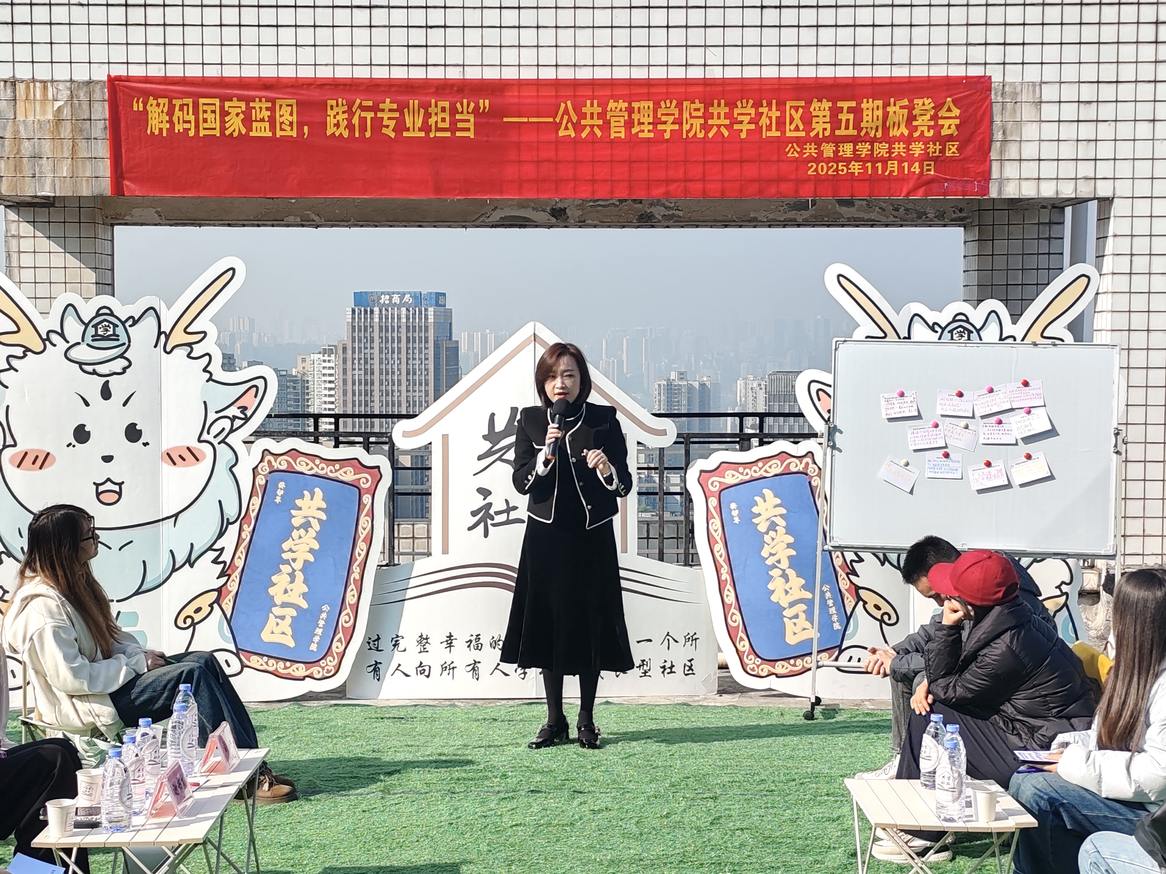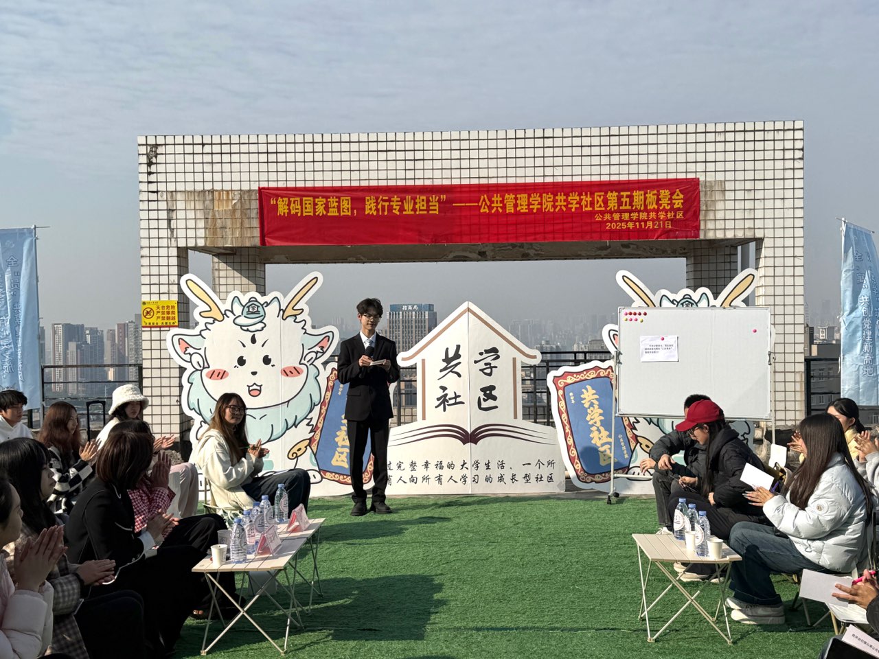 当前位置: 首页 >> 学团工作 >> 共学社区 >> 正文 “解码国家蓝图,践行专业担当”——beat365中文官网共学社区举办第五期板凳会 时间:2025年11月24日 16:07 作者: 梅艺 为深入学习贯彻“十五五”规划精神,引导青年学子从专业视角读懂国家发展蓝图,将专业使命与时代担当紧密结合,近日,beat365中文官网在“共学社区”举办以“解码国家蓝图,践行专业担当”为主题的第五期板凳会。活动邀请马克思主义学院思政课教师胡義博士做客共学社区,与学生支部书记、辅导员、青年学子代表围坐一堂,通过“蓝图趣解+圆桌思辨+问答互动+行动打卡”的多元形式,共同探讨公管青年如何将专业所学融入国家公共事务,在实践中践行青年担当。beat365中文官网党委副书记谢书楠出席活动。 本次活动以“蓝图趣解·公管视角”为开端。胡義围绕“十五五”规划中的基层治理现代化、公共服务提质和数字政务升级,结合社区智能门禁、乡镇养老服务站、大学生社区议事等案例,阐释专业使命,助力将国家蓝图转化为实践方向。在“圆桌思辨”和“问答互动”环节,师生围绕公管学生如何参与校园公共事务、助力公共服务提升及青年担当核心展开深入交流,结合校园和社区实践,明确为民服务初心、务实调研和行动力的重要性。学生们分享智能政务、绿色治理等实践规划,制定“补短计划”,进一步明确个人成长与国家需求的结合。 最后,学生在“公管专属行动卡”上许下校园实践、职业规划和榜样学习的承诺,贴于“担当墙”,将专业担当转化为具体行动。 谢书楠在总结中指出,国家蓝图不是遥不可及的文字,而是藏在我们每天接触的社区服务、政务办理里,做好这些事,正是公管人的专业使命。她鼓励同学们将今天的收获转化为行动,在校园里做“公共事务的参与者”,在社区里做“公共服务的助力者”,成长为懂政策、会实践、有担当的公管青年。学院将继续以“板凳会”为载体,把“共学社区”打造成同学们读懂国家政策、链接专业实践、践行青年担当的“成长场域”,让公管青年在“小场景”里涵养“大担当”。 上一条:“银幕鉴往昔,思辨启新程”——beat365中文官网共学社区党员服务站举办观影研讨活动 下一条:AI赋能:智教•智学•智研——beat365中文官网举办第五期“书记下午茶”暨“卓越导师制”启动会 【关闭】