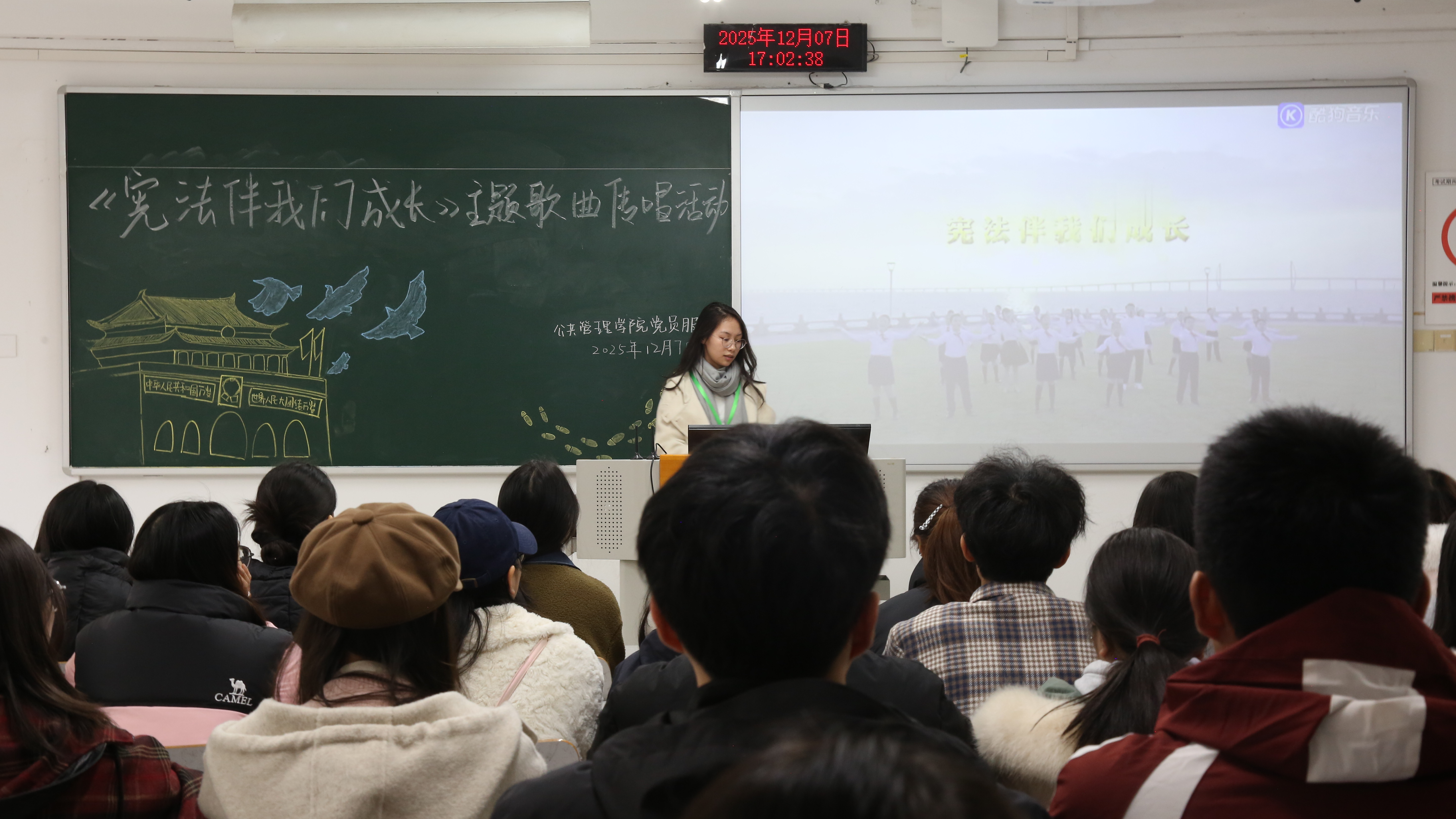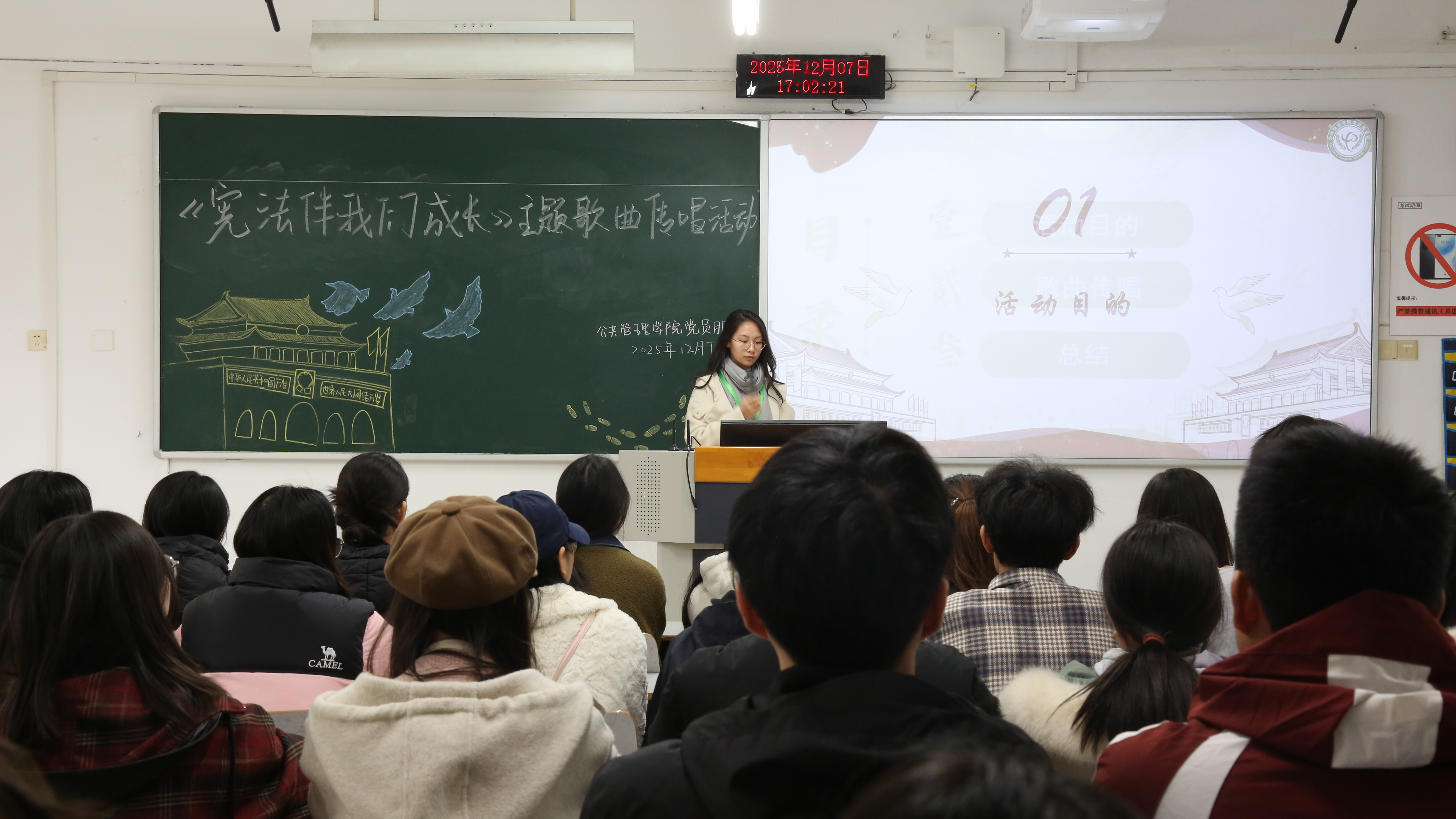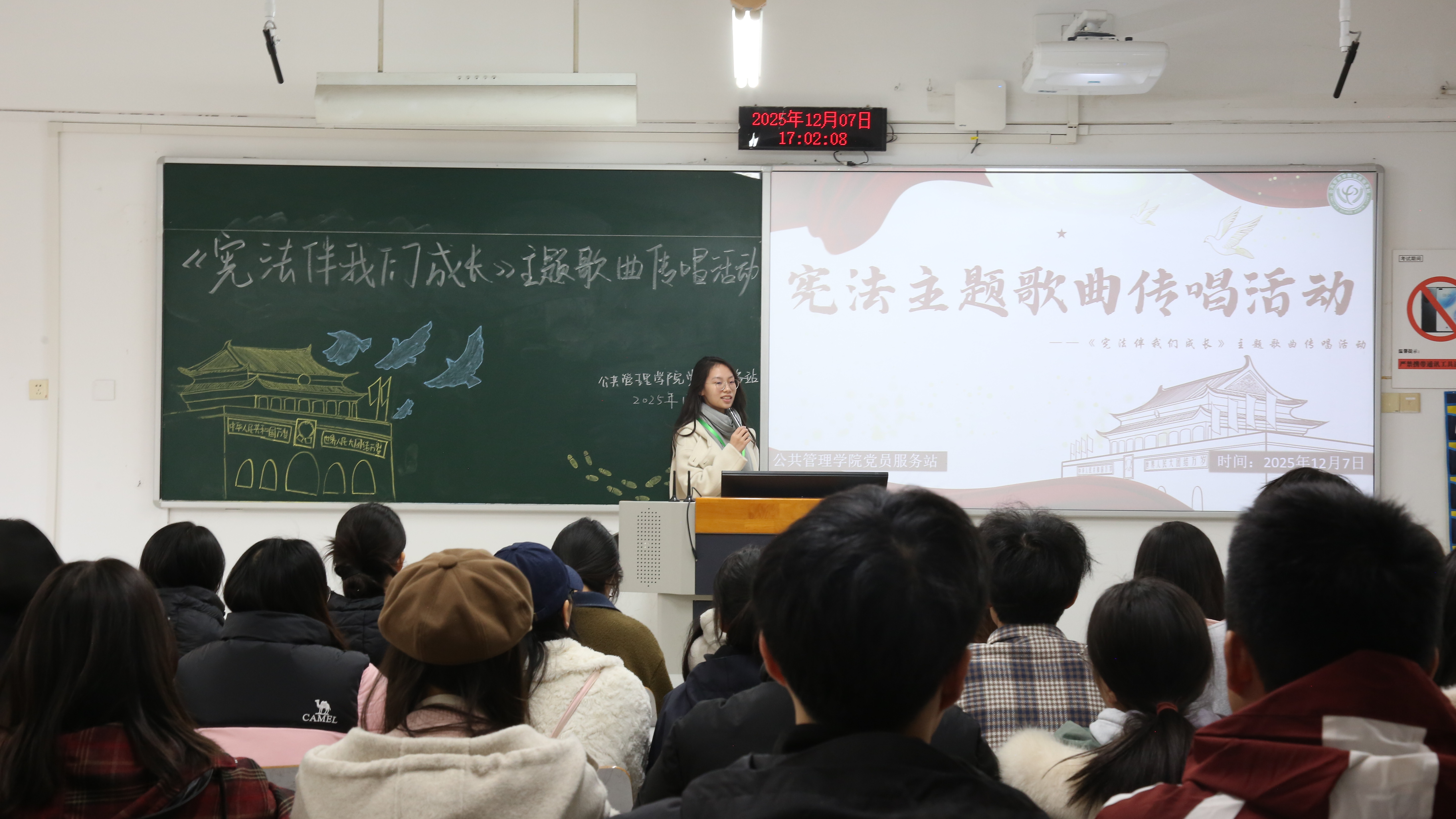 当前位置: 首页 >> 学团工作 >> 共学社区 >> 正文 “弘宪铸魂路,青春与宪行”——beat365中文官网 共学社区党员服务站举办“学宪法,讲宪法”系列活动 时间:2025年12月08日 17:47 作者: 梅艺 为深入学习贯彻习近平法治思想,落实“八五”普法规划要求,提升青少年法治素养,深化学院“共学·铸魂工程”建设,2025年12月7日,beat365中文官网共学社区党员服务站于博智楼07304教室先后开展了“宪法就在身边”主题教育活动和《宪法伴我们成长》歌曲传唱活动,共计42人参与。本次活动以全国“宪法宣传周”为契机,紧密围绕重庆市教育系统“八五”普法规划部署,依托共学社区育人平台,着力增强学生对宪法的具象化认知。 首先是“宪法就在身边”主题教育活动,主持人袁若芸简要介绍活动背景和目的后组织大家观看了“八五”普法宣传视频,视频中的案例生动阐释宪法与公民日常生活的紧密联系,引导青年学子增强对宪法的具象化认知与理解。随后进行的《宪法伴我们成长》歌曲传唱活动中,全体人员在主持人袁若芸的带领下齐声唱响主题歌曲,在音乐旋律中深化对宪法精神的情感认同,推动宪法教育从理论认知向行为自觉转化。 此次活动依托共学社区平台,以“视听结合、沉浸体验”的形式开展,是beat365中文官网共学社区党员服务站推动宪法教育融入“三全育人”体系的重要实践。通过“学宪法,讲宪法”系列活动的开展,有效增强了法治教育的感染力与实效性,为营造校园尊法、学法、守法、用法的良好氛围发挥了积极作用。 上一条:喜报!beat365学生荣获重庆市关工委“中华魂”主题读书活动演讲比赛一等奖 下一条:“银幕鉴往昔,思辨启新程”——beat365中文官网共学社区党员服务站举办观影研讨活动 【关闭】