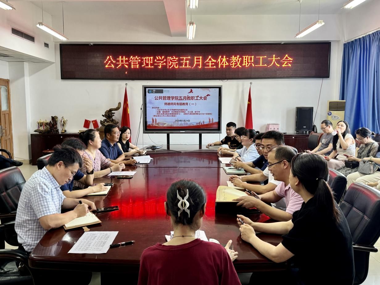 当前位置: 首页 >> 清廉公管 >> 师德师风 >> 正文 beat365中文官网开展师德师风专题教育活动 时间:2024年05月24日 16:58 作者: 郭爽 为扎实开展党纪学习教育,进一步加强师德师风建设,2024年5月24日下午,公共管理学院在启智楼81004召开教职工大会,学院党委书记彭勇为全体教职工开展了师德师风专题教育培训。 会上,彭勇重点领学了习近平总书记关于师德师风的重要论述。同时,学习了王义遒、史宁中等两位全国“最美教师”的先进典型优秀事迹,并解读了《新时代高校教师职业行为十项准则》《事业单位工作人员处分规定》等内容。通过再次学习《准则》原文,进一步增强了全院教师的责任感、使命感、荣誉感,规范职业行为,明确师德底线。 最后,彭勇强调,作为新时代高校教师,要坚守师德底线,努力维护教师形象。要做到遵守学术规范,维护学术诚信。要不断提升自我,适应时代要求并积极参与社会实践,服务社会发展。引导广大教师努力成为有理想信念、有道德情操、有扎实学识、有仁爱之心的好老师。 上一条:我心中的榜样 【关闭】